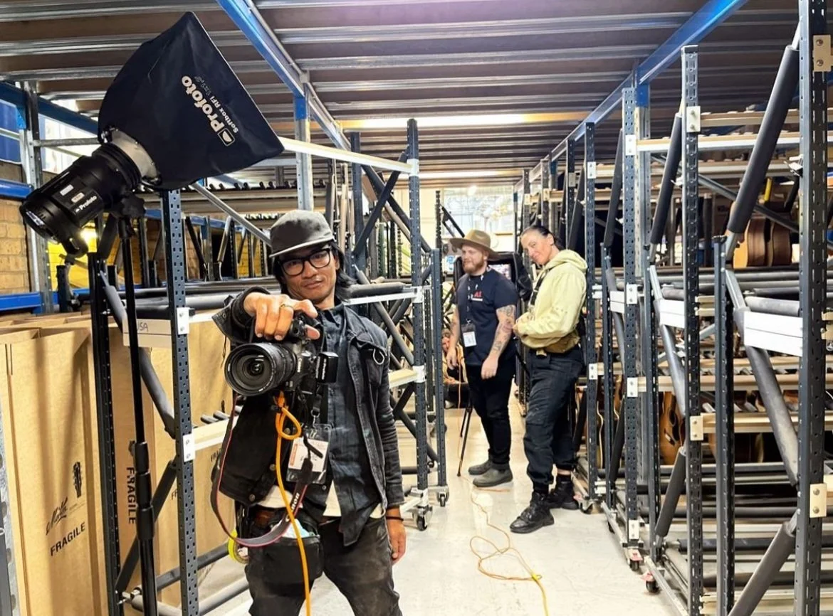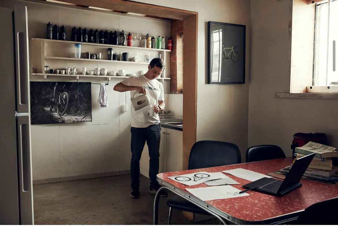 This was the third production we completed in the new creative format we had devised and honed in on. We had learned on the Fortis and Cloud shoots that tapping into the authenticity of the images was key and by photographing real people, doing real things in their real environments, we could draw out that aesthetic. This was a 10 day shoot spread out across a few weeks while we travelled between Sydney and Melbourne, finding the right business. We needed to find businesses that operated using HP technology, with an interesting work environment and would be beautiful to photograph… not an easy combination to find. We landed on shooting with AM Eyewear in Sydney and Maton Guitars, Joco Cups, Great Wrap and Baum Cycles in Melbourne and photographed them in their work, home and recreational environments. Some of the images from this campaign were selected in Josh’s portfolio of work that he was awarded Top 200 Advertising Photographers worldwide in the 23/24 year by Luerzers Archive. Our client and agency was based in the US at the time, and due to COVID restrictions could not come to Australia for the shoot so we therefore needed to be on zoom to them. I was in constant contact with the agency producer and creatives via WhatsApp who would pass through any feedback and they would all be watching via the zoom.